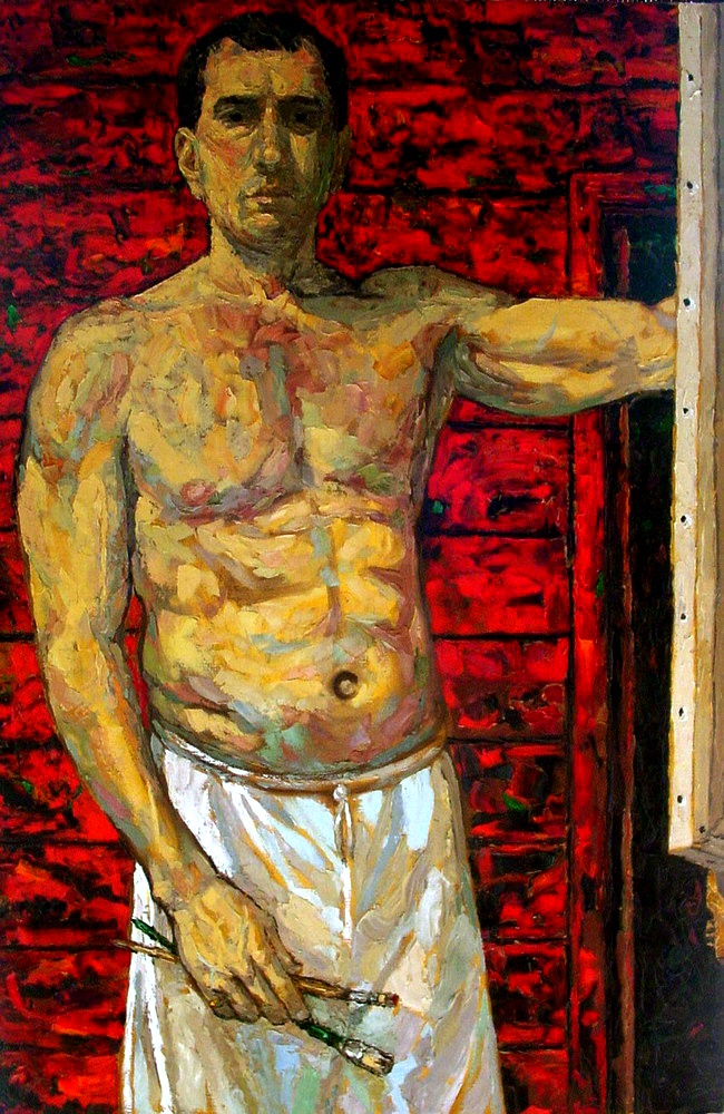 Portrait: Oil on canvas. Self portrait in my studio in Chiang Mai, 119 x 79 cm (47 x 31in)