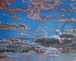 Imaginary landscape. Oil on canvas. Cityscape-sunrise.