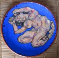 Oils on hand-made, Moroccan, clay platter. 44 cm in diameter (17 inches)