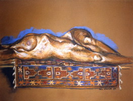Nude, pastel on paper. Isabel & carpet, front.